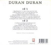 Best Of · Disc 1: "Rio" · "The Reflex" · "Hungry Like the Wolf" · "Save A Prayer" · "Is There Something I Should Know?" · "New Moon on Monday" · "Girls on Film" · "I Don't Want Your Love" · "Secret Oktober" · "Planet Earth" · "My Own Way" · "Fame" · "Careless Memories" · "Faster Than Light" · "Faith In This Colour" · Disc 2: "The Wild Boys" · "Notorious" · "Skin Trade" · "Do You Believe in Shame?" · "The Chauffeur" · "Union of the Snake" · "Burning the Ground" · "Meet El Presidente" · "Like An Angel" · "Late Bar" · "All She Wants Is" · "American Science" · "Tiger Tiger" · "Khanada" |