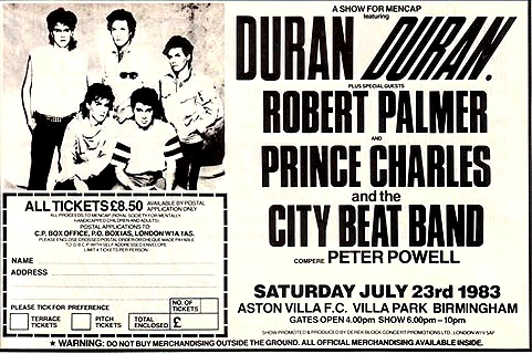 The evening began at 6:00pm with host Peter Powell introducing Prince Charles and the City Beat Band. This group would later support Duran Duran on their US leg of The Sing Blue Silver Tour in 1984.