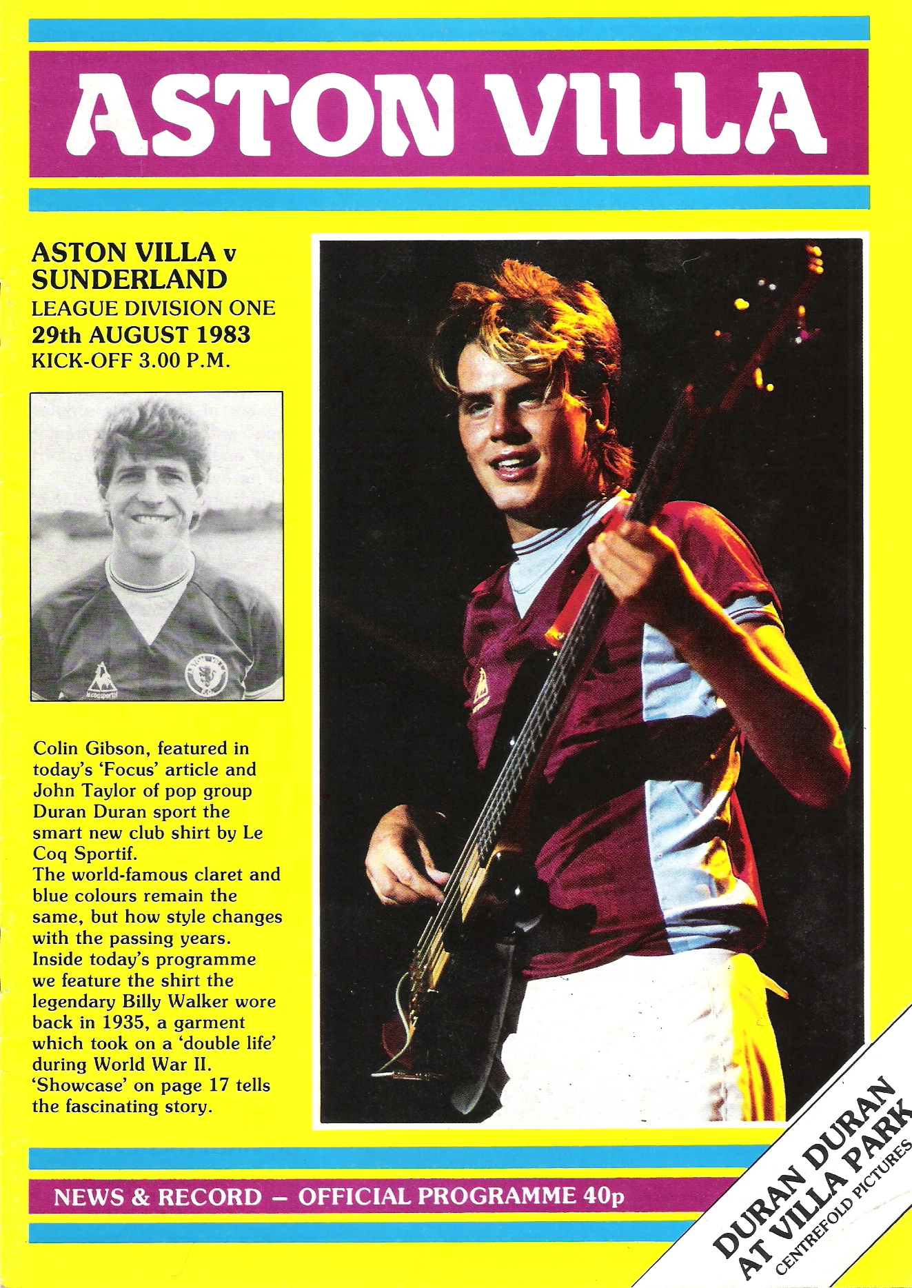 Tickets for the event cost £8.50. The programmes were designed by Assorted iMaGes, which consisted of 11-glossy double sided flyers housed in a white glossy folder. They cost £2.00. The event logo incorpated a Duran Duran 'DD' with an Aston Villa 'lion'.