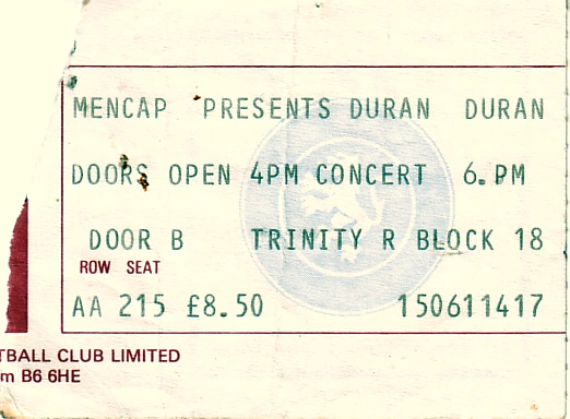 This was Duran Duran's biggest Birmingham gig with 18,000 people attending, until the 2004 St. Andrews show watched by 28,000 people.